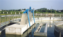 (8)集水槽進(jìn)水口裝有自動(dòng)擋泥板,在池內(nèi)曝氣時(shí)能有效的隔離污泥。