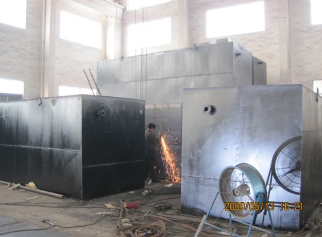 該設(shè)備采用接觸氧化法、由初沉池、接觸氧化池、二沉池、消毒池、污泥池、和風(fēng)機(jī)六部分組成。該設(shè)備適用于埋入地下,不占地表面積,運(yùn)行對(duì)周?chē)鸁o(wú)影響。進(jìn)水平均BOD5為200mg/l以下,出水降為50mg/l以下,去除率≥80%,COD去除率≥81%,懸浮物去除率≥80%。適用于食品、屠宰、釀造、印染等行業(yè)與生活污水相類(lèi)似的有機(jī)工業(yè)污水和生活污水。